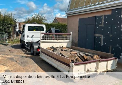 La commune de La Pomponnette 77400 offre à ses administrés la possibilité de bénéficier de la mise à disposition de benne de différentes contenances (3m3, 6m3, 10m3…) et pour différentes occasions : déménagements, déchets verts et gravats. Les bennes de 3m3 sont destinées pour aider les particuliers à assurer l’évacuation de déchets verts. Pour cette benne de petites contenances, la commune privilégie les particuliers dont les propriétés sont difficiles d’accès avec une possibilité de faire une rotation de plus.
